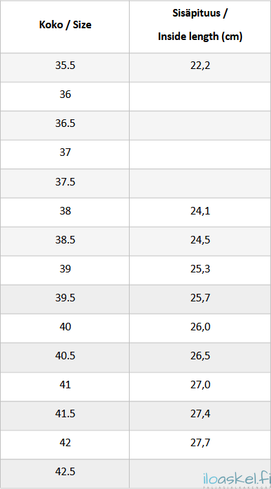 Tämä nauhaton pull-on-malli on mitoitukseltaan jonkin verran väljempää sekä pituudesta että leveydestä kuin nauhallinen Alpine.