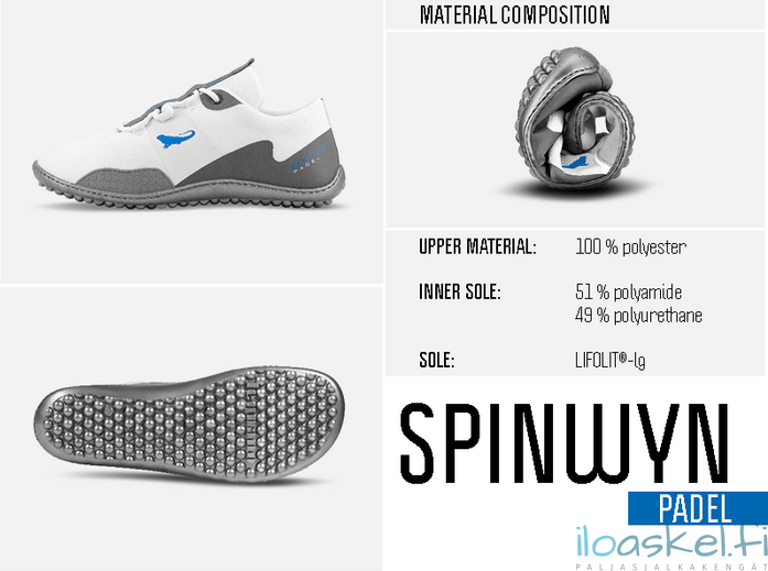 Leguano Spinwyn Padel tuo kentälle ensimmäisen erityisesti padelia varten suunnitellun paljasjalkakengän. Ammattilaisten ammattilaisille kehittämä jalkine, joka yhdistää huippusuorituskykyisen urheilukengän dynamiikan ja tarkkuuden Leguanolle ominaiseen paljasjalkatuntumaan.