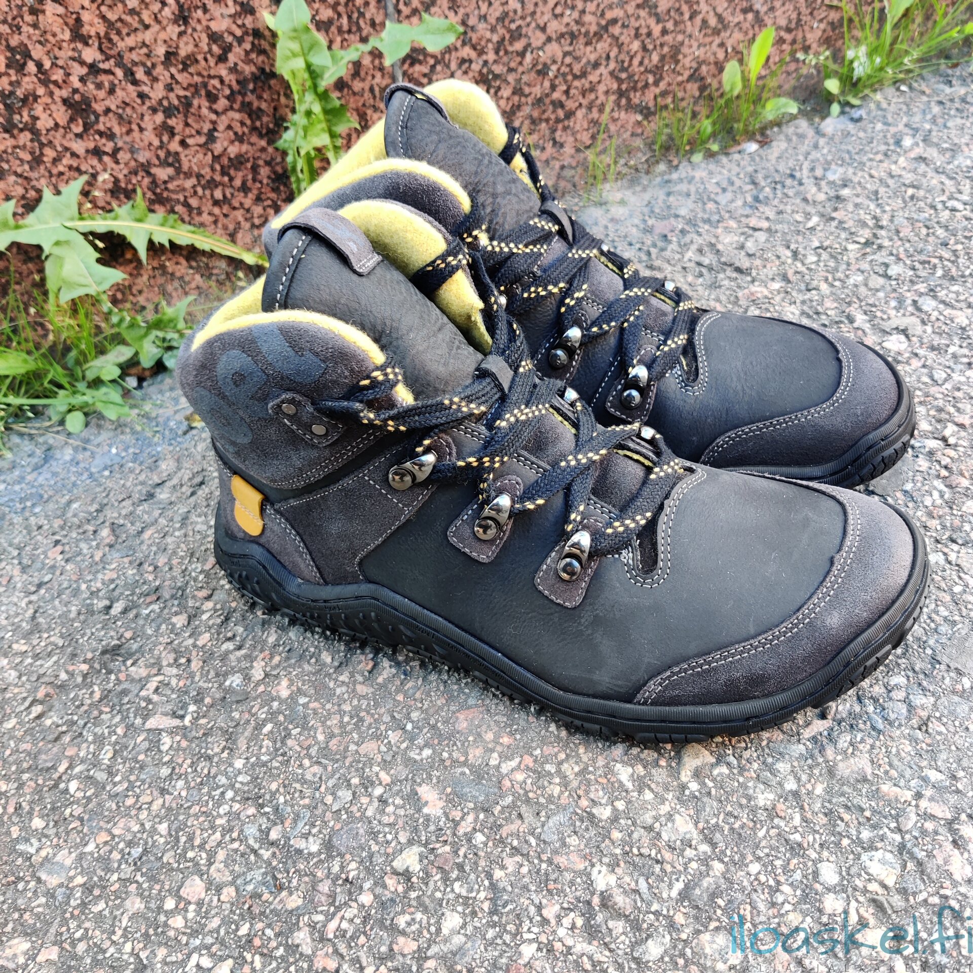 Vaelluskenkätyyliset nilkkurit, joissa päällinen pehmeää, vettähylkivää nahkaa ja vuori merinovillakangasta. Joustava kumipohja, jossa syväurainen kuviointi.