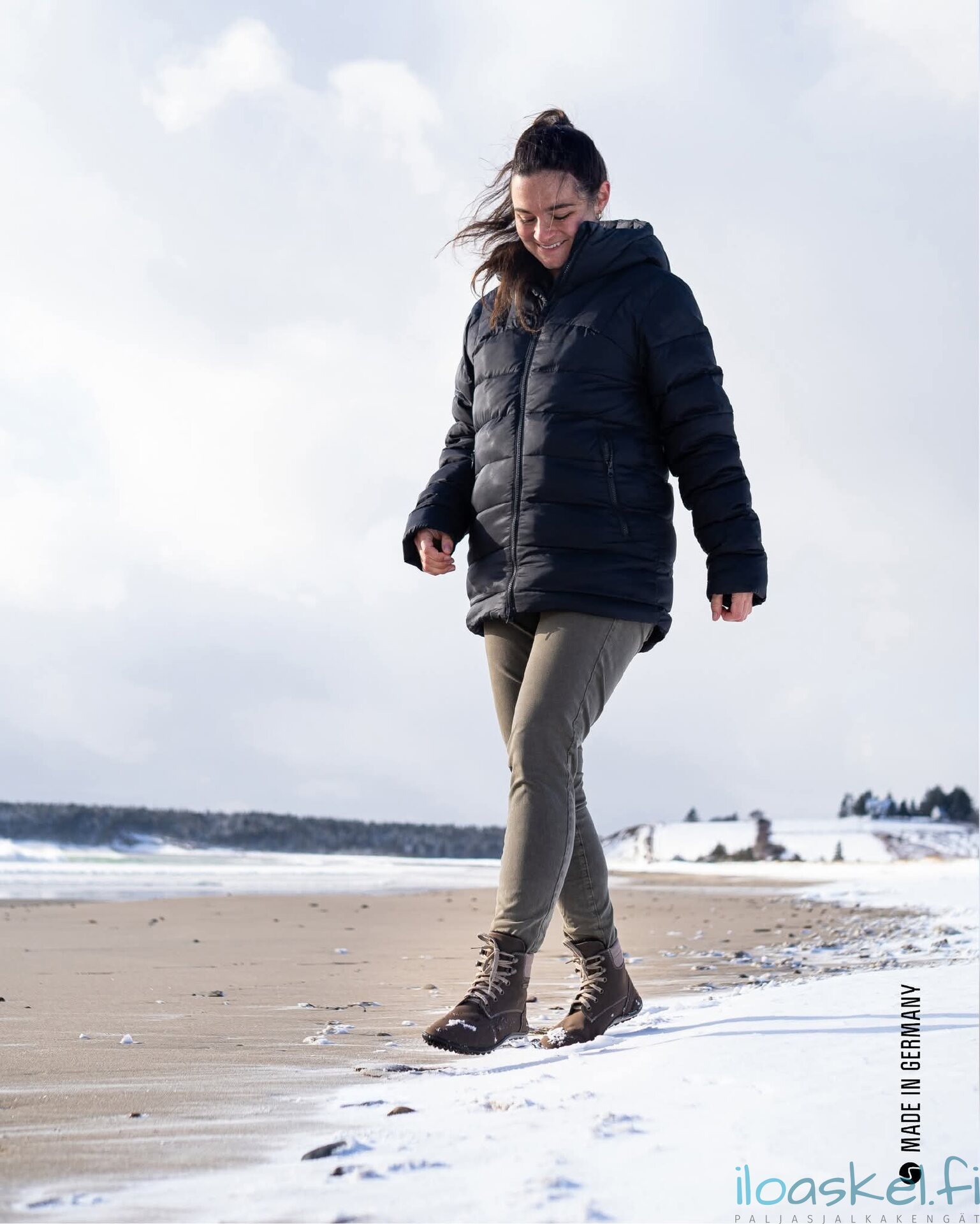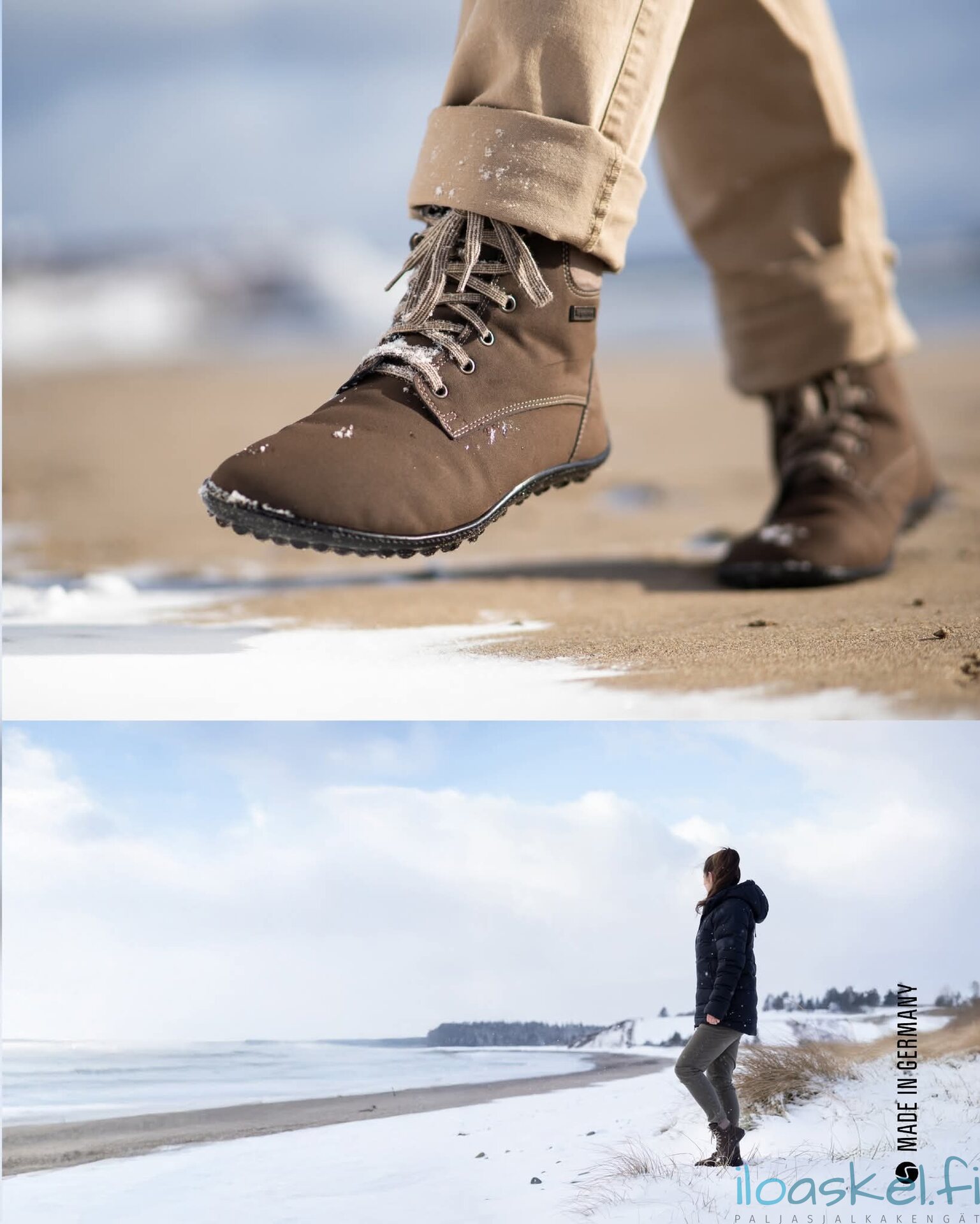 Leguano Icebare erittäin joustava ja kevyt talvikenkä, jossa on hieman korkeampi varsi kuin Husky-mallissa ja väreinä tyylikäs, maanläheinen ruskea sekä musta.