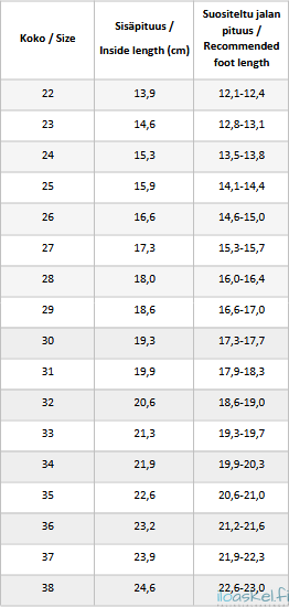 • Pohjallinen: PU + fleece (irrotettava)