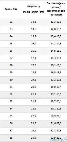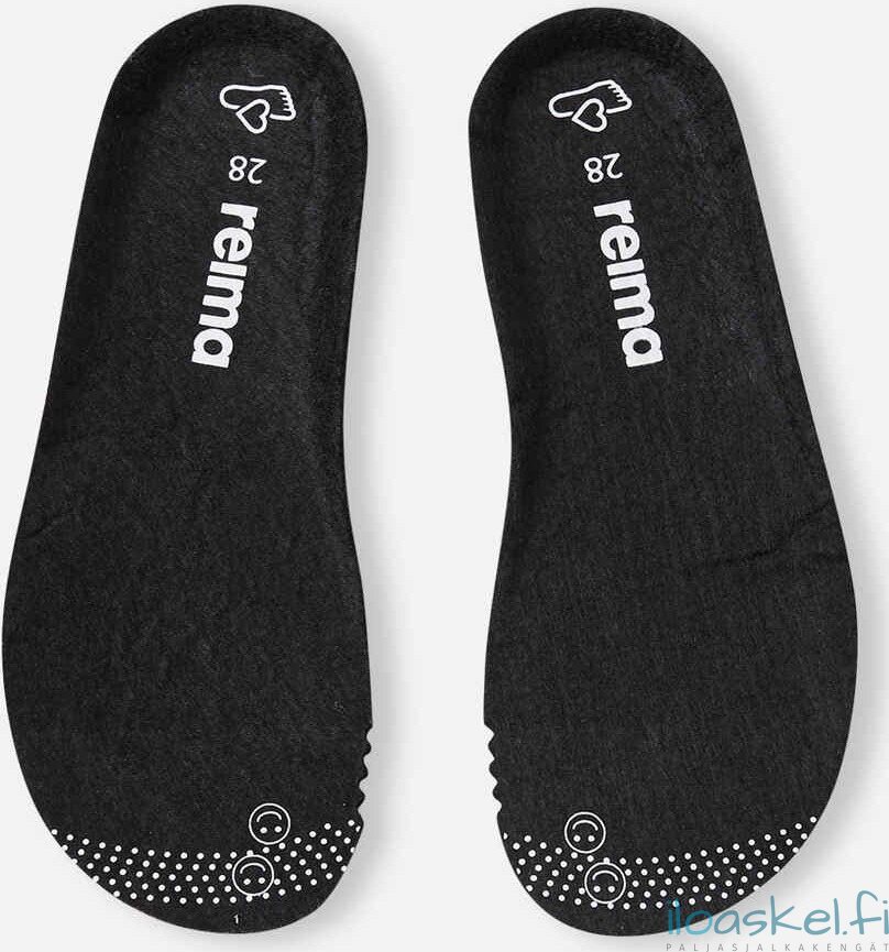 Irrotettavat huopapohjalliset, joissa Happy Fit -kuviointi helpottamassa oikean koon valintaa