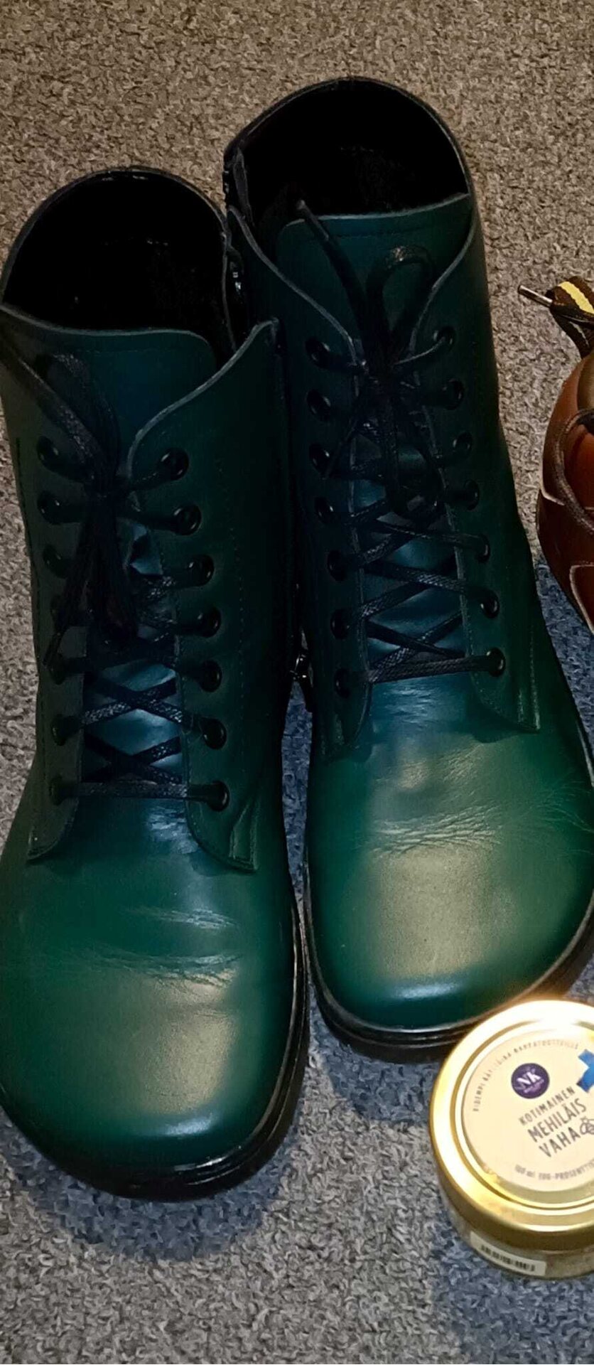 Vihreä Teal on aivan loistava väri, joka houkutteli nämä kengät ostamaan. Noin 25cm jalkaan koko 40 sopiva. Mahtuu tarvittaessa pelkkä ohuehko villasukka tai yhdistelmä sukkahousut+merinovillasukka. Paksuuden puolesta hyvät välikauteen ja pikkupakkasille. Toimii sekä mekkojen että housujen kanssa. Vetoketjusta plussaa, saa vedettyä nopeasti jalkaan.