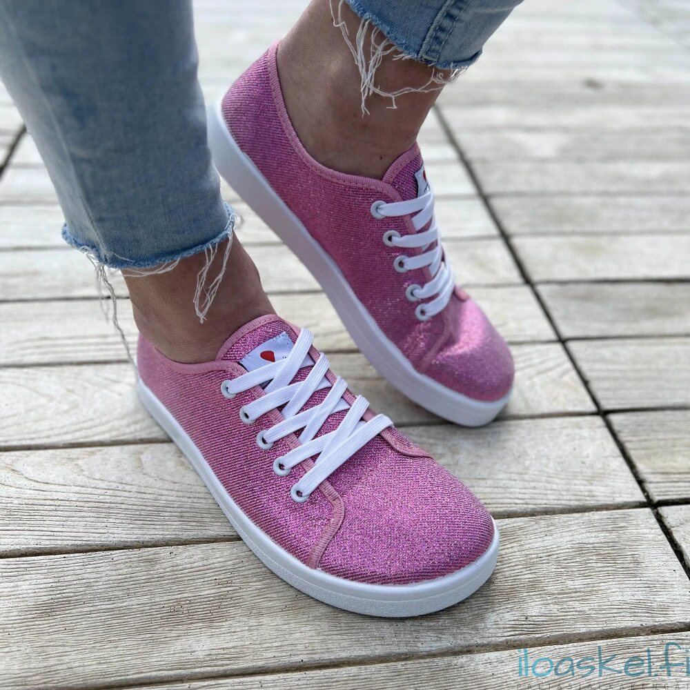 Kokeilin sekä 40 että 41. Koko 40 (normaalistikin käyttämäni koko) oli sopiva 24,7 cm pituiseen jalkaani. Matalahko malli, ei ehkä sovi kovin rintavaan jalkaan. Kevyet ja mukavat jalassa, ei hiosta myöskään. Todella hintansa arvoiset ja kimaltava pinkki on aivan ihana väri! Kiitos hyvästä palvelusta 🩷