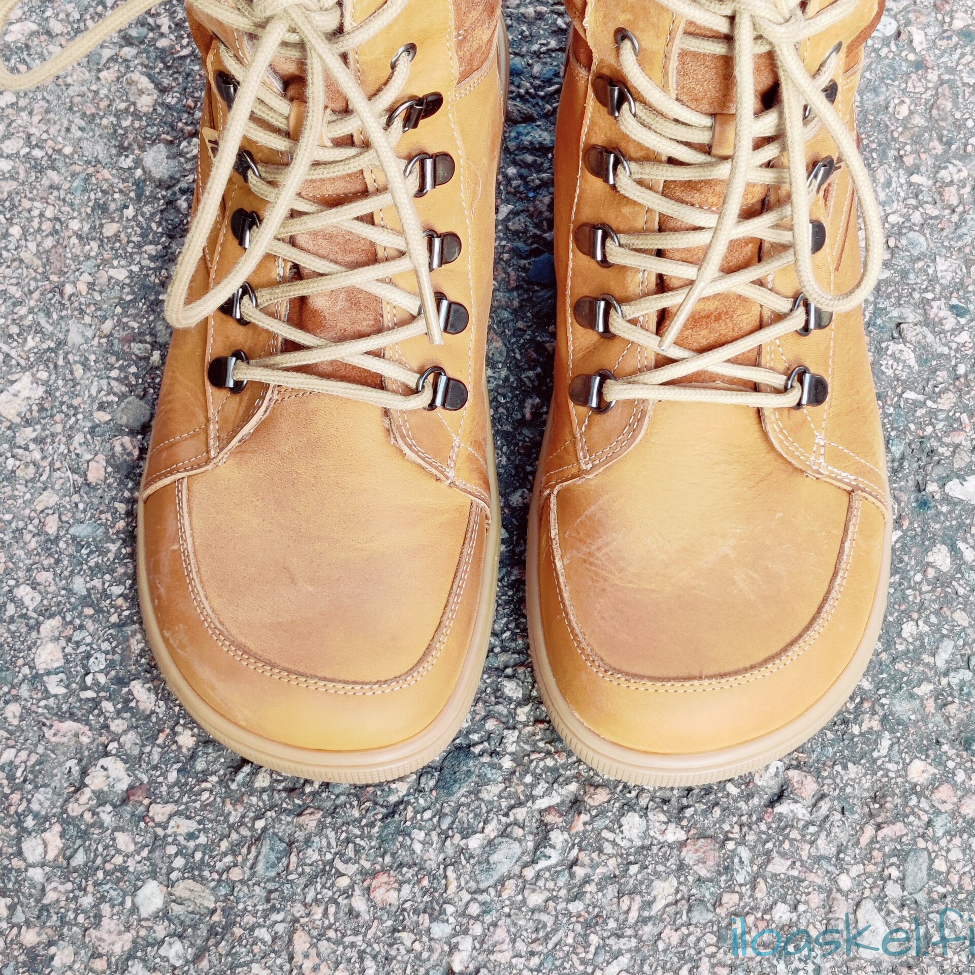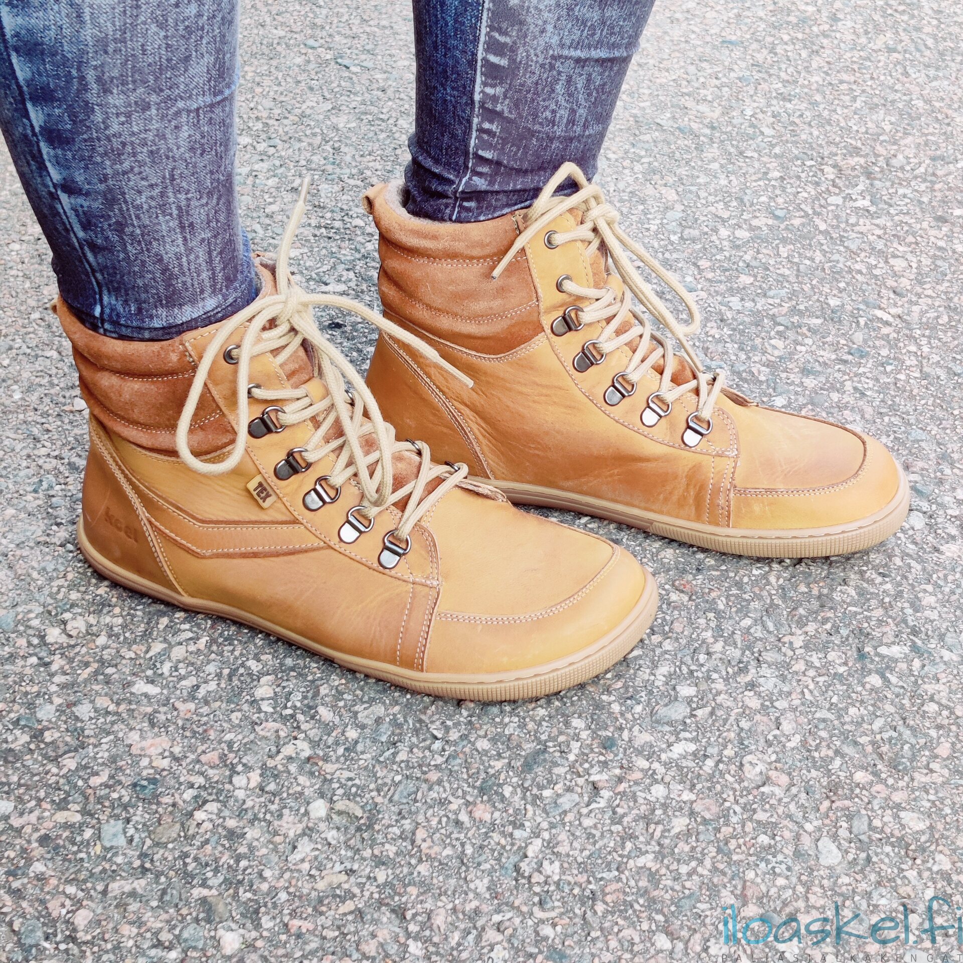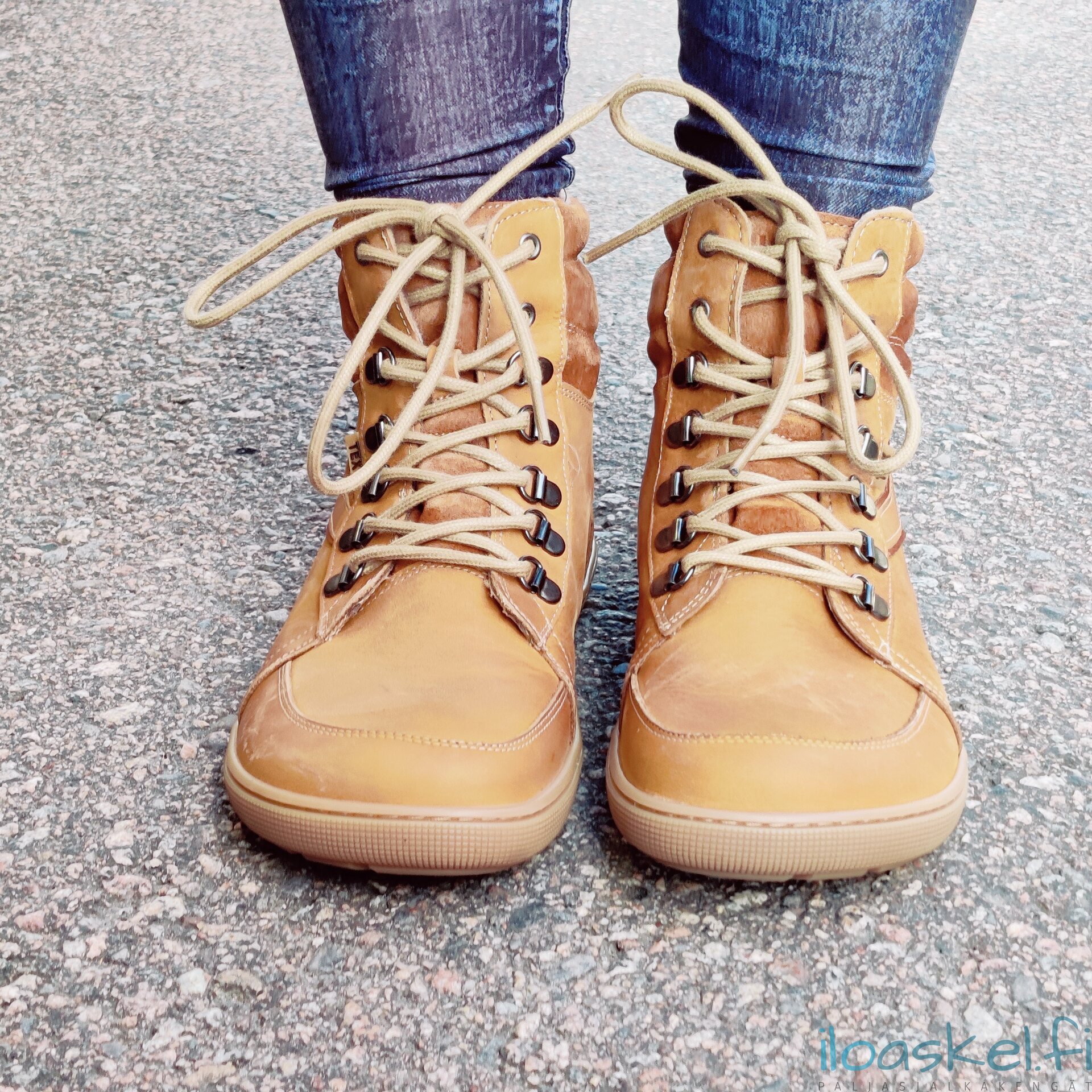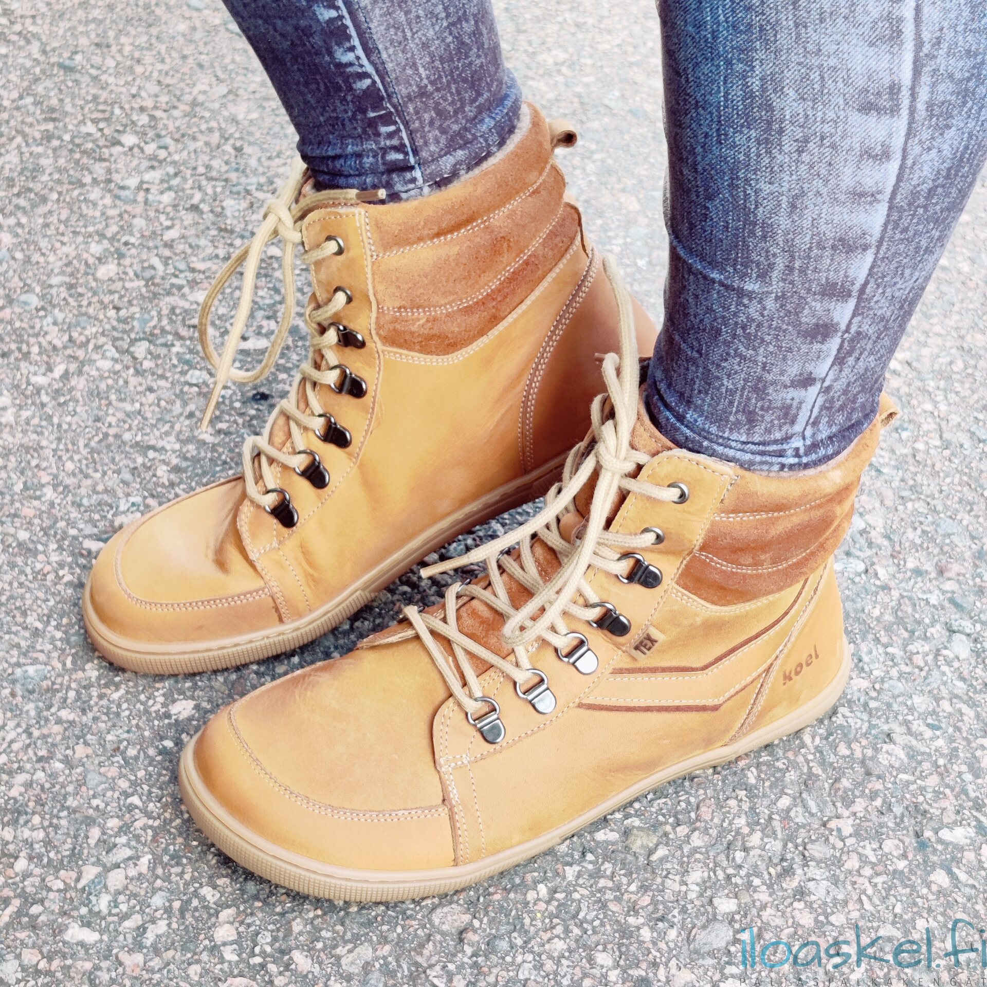 Nahkaiset nilkkurit välikauden tai talven ulkoiluun ihanassa konjakinruskean sävyssä.