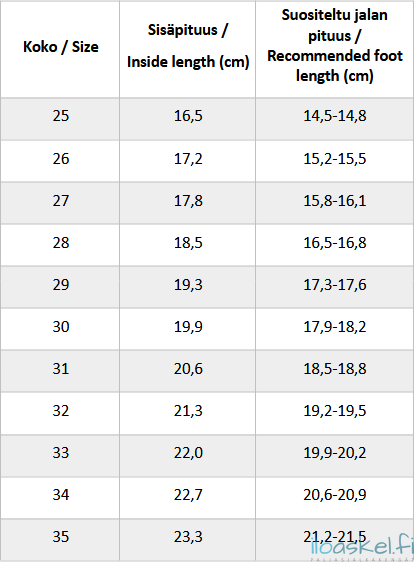 Helpot vetää jalkaan ja kiristää varren yläosassa olevalla joustonauhalla.