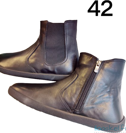 Minimalistisen tyylikäs chelsea boot -tyylinen nauhaton nilkkuri, jossa ohut vuori ja sivussa venyke sekä vetoketju, joten nämä on helppo sujauttaa jalkaan.